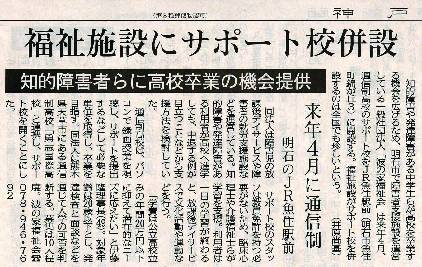 2)完全通学制で、波の家福祉会が卒業できるまできめ細かな支援をします。